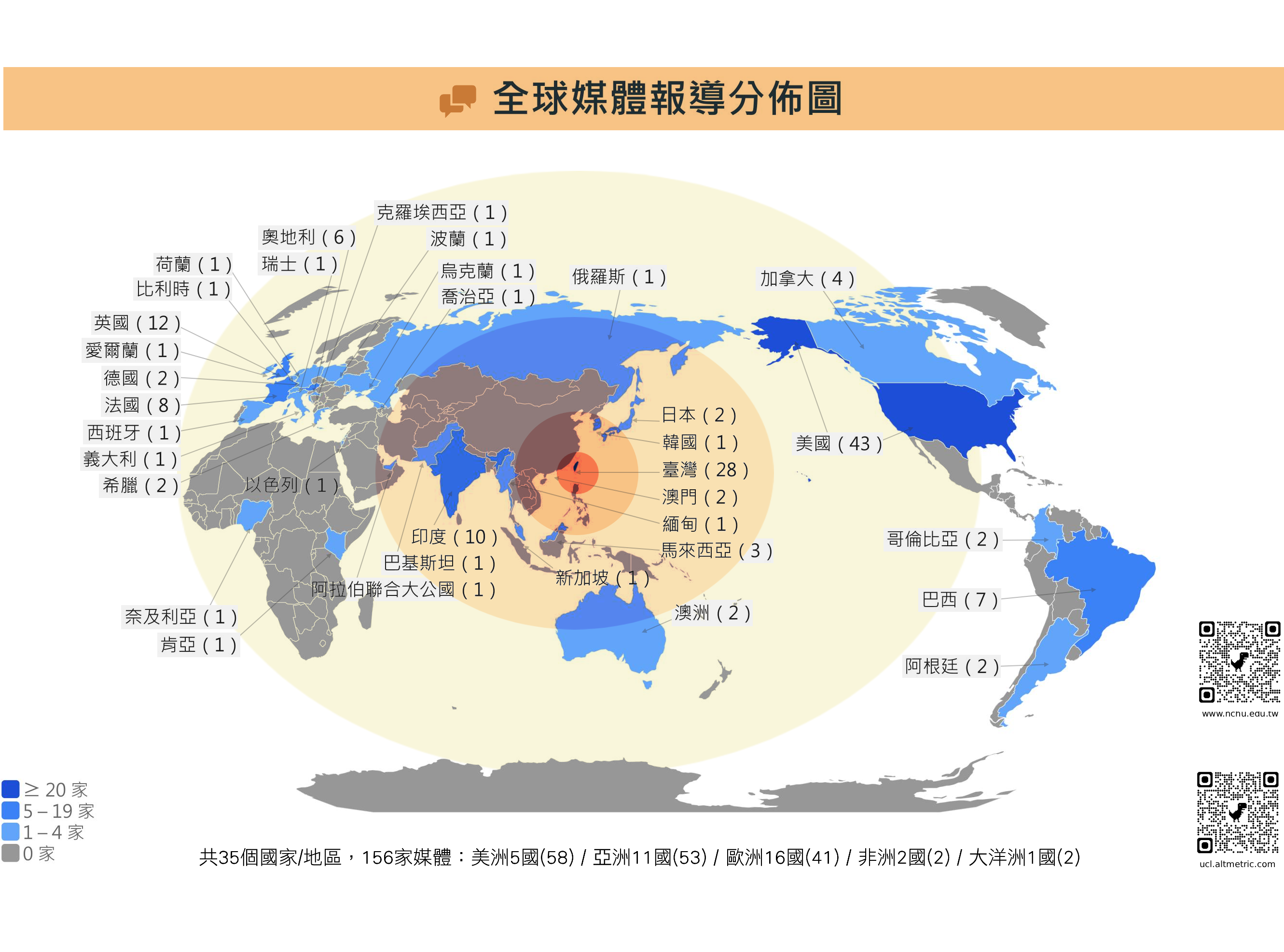 ◆ 全球各國媒體報導分佈圖1. 中華民國僑務委員會 Exercise still beneficial, but less so, in high PM2.5 air: Study